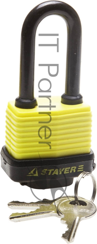 [Хозтовары] Замок STAYER MASTER навесной, всепогодный, пластиковая защита корпуса, с удлин. закален. дужкой,на карточке, 50мм [37141-40]