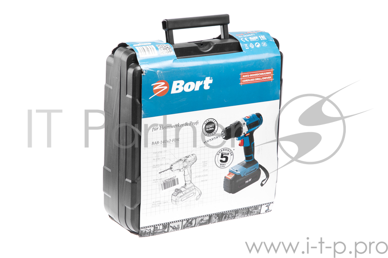 Дрели, Шуруповерты, Гайковерты, Миксеры Bort BAB-14Ux2-FDK Дрель-шуруповерт аккумуляторная 98296471 { 14,4 В, 1.3 Ач, Ni-Cd, 2 Акк, 30 Нм, 1300 об/мин, БЗП, 1,4 кг, кейс, набор аксессуаров 5 шт }
