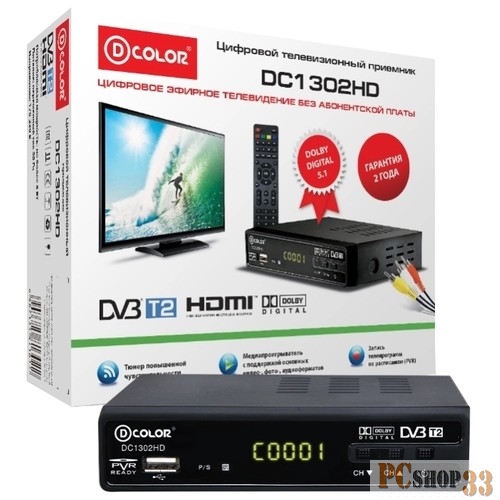 D-Color Ресивер DVB-T2 D-Color DC1302HD черный