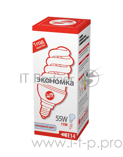 Лампа энергосберегающая Космос ЭКОНОМКА SPC11wE1442eco, 11 Вт, холодный свет, цоколь 14, спираль Т3