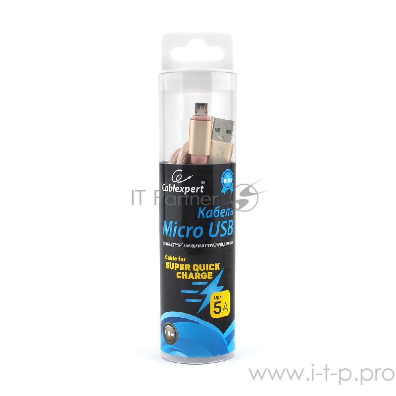 Кабель USB 2.0 Cablexpert CC-U-mUSB02Gd-1.8M, AM/microB, серия Ultra, длина 1.8м, золотой, блистер