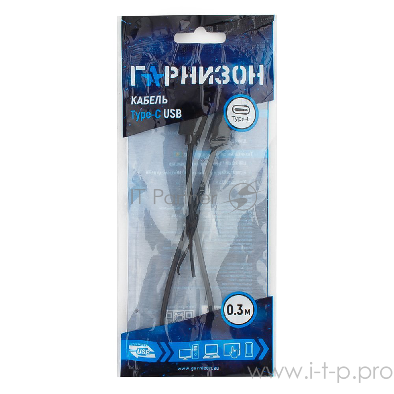Кабель USB Гарнизон GCC-USB2-AMCM-0.3M, USB2.0 AM/ USB3.1 Type-C, 0.3м, пакет