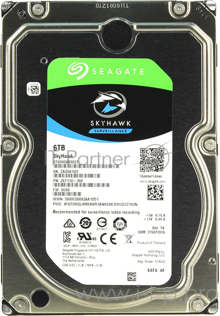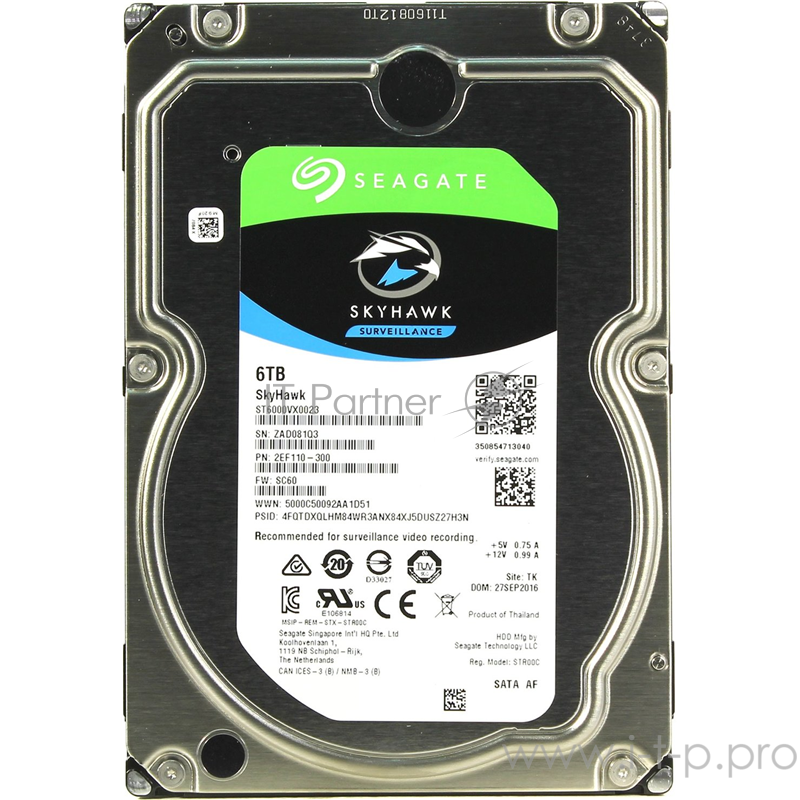 Жесткий диск 6TB Seagate SkyHawk (ST6000VX0023) {SATA 6 Гбит/с, 7200 rpm, 256 mb buffer, для видеонаблюдения}3.5