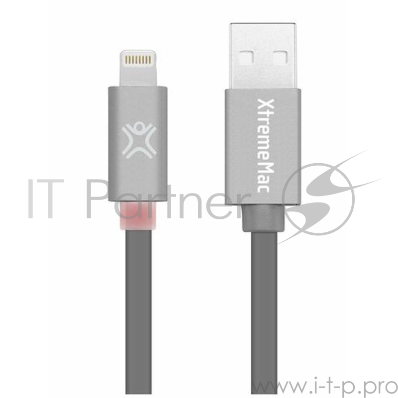 Кабель XtremeMac Lightning to USB Flat LED. Длина 1,2м. LED индикатор заряда. Цвет серый космос.
