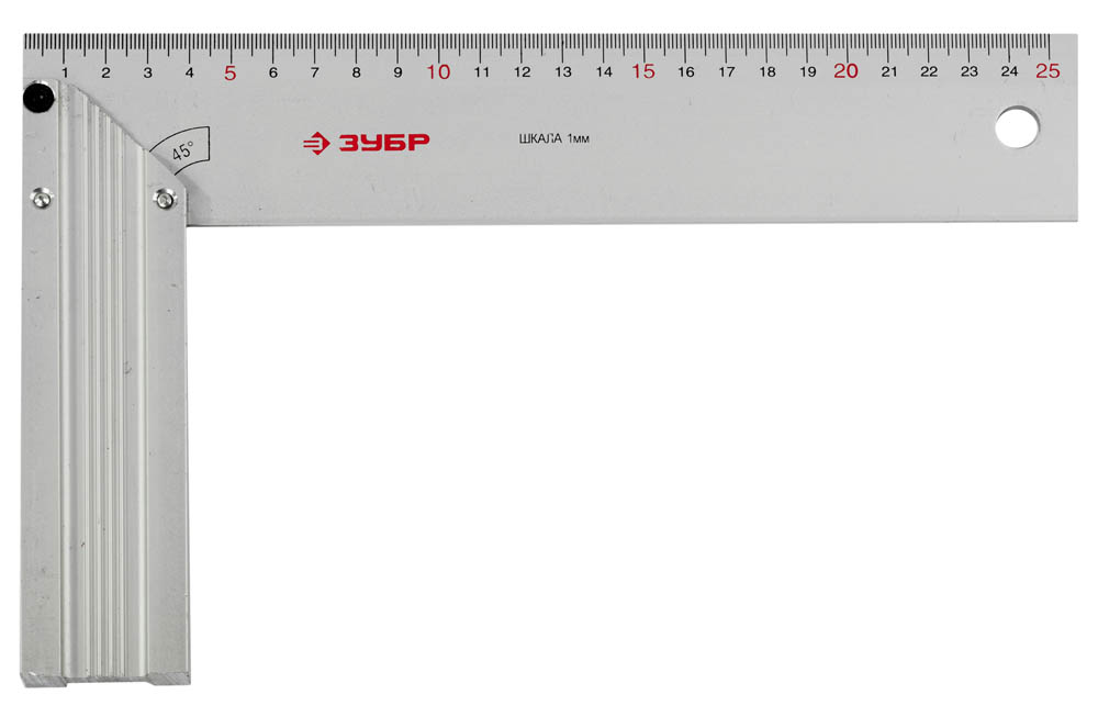 [Уровни, рулетки, мерные ленты, линейки, угольники] Угольник ЗУБР ЭКСПЕРТ столярный, жесткое профилированное полотно, усиленная алюминиевая рукоятка, 250мм [34395-25]