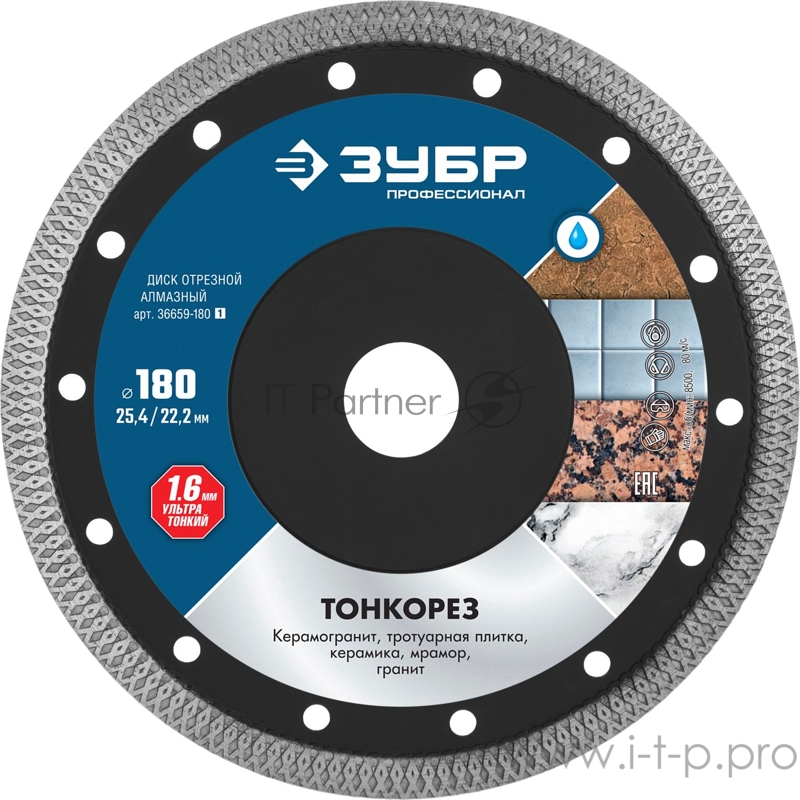 ТОНКОРЕЗ 180 мм, диск алмазный отрезной сплошной ультратонкий, ЗУБР Профессионал [36659-180_z01]