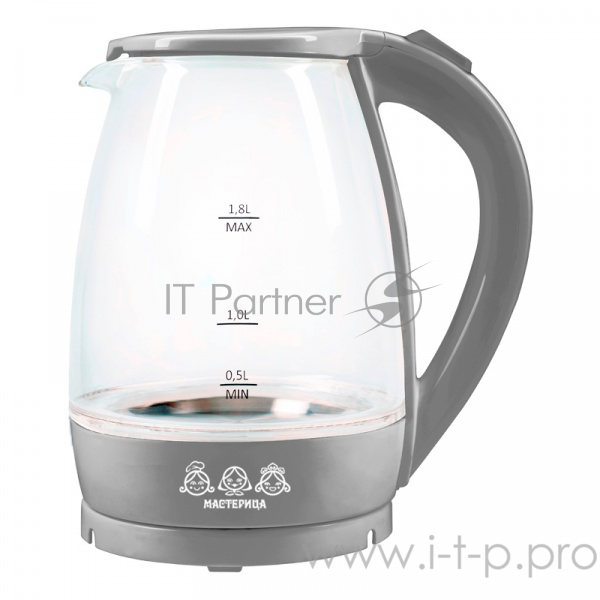 Чайник электрический Мастерица ЕК-1801G, дымчатый, 1,8л, стекло, 1850 Вт
