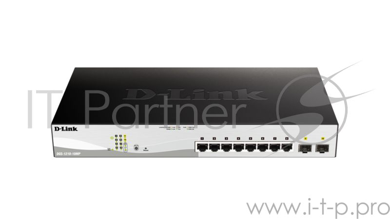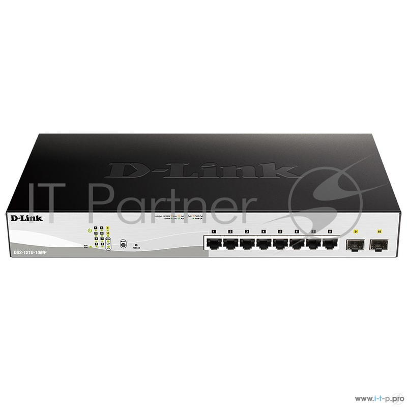 Сетевое оборудование D-Link DGS-1210-10MP/F1A Настраиваемый коммутатор WebSmart с 8 портами 10/100/1000Base-T и 2 портами 1000Base-X SFP (8 портов с поддержкой PoE 802.3af/802.3at (30 Вт), PoE-бюджет 130 Вт)