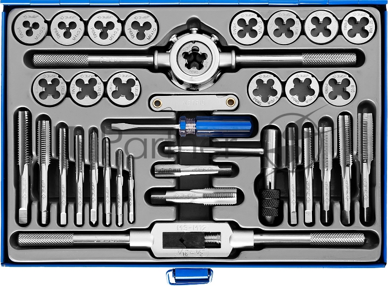 Набор метчиков и плашек ЗУБР 28110-H35 ПРОФЕССИОНАЛ сталь Р6М5, 35 предметов