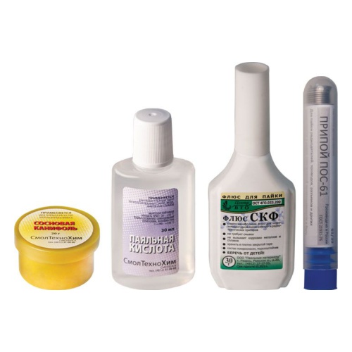 КУРС РОС Набор для пайки № 2 (припой ПОС-61 с каниф. 10гр.; каниф.сосн. 20гр.; кислота паял. 30мл; флюс СКФ 30мл) [60622]