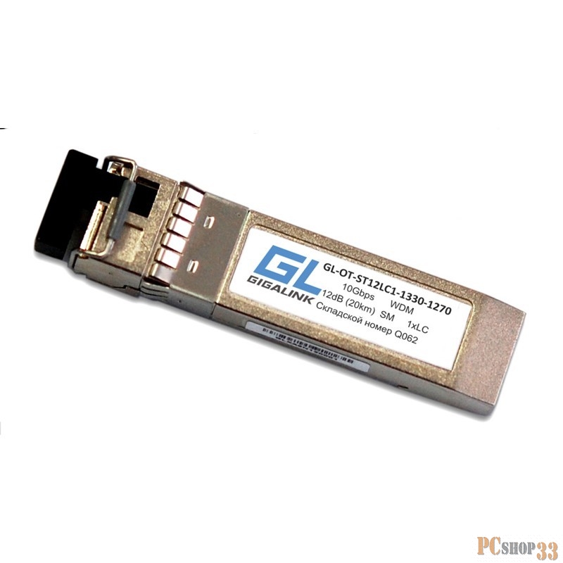 Сетевое оборудование GIGALINK GL-OT-ST12LC1-1330-1270 Модуль SFP+, WDM, 10Гбит/с, одно волокно, SM, LC, Tx:1330/Rx:1270 нм, 12 дБ (до 20 км) DDM