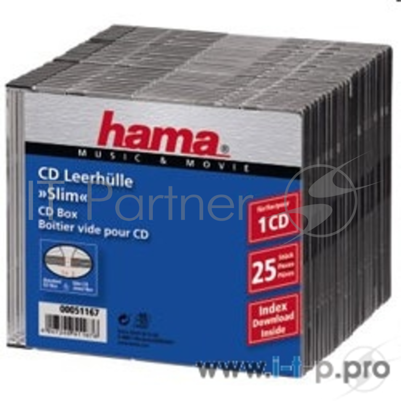 Конверт HAMA Коробка для 1 CD slim, прозрачный/черный, 25 шт. H-51167