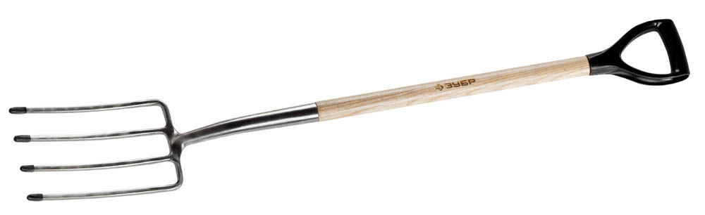 Грабли, Вилы, Лопаты Вилы ЗУБР "ЭКСПЕРТ" садовые из нержавеющей стали, деревянный черенок из ясеня, пластиковая рукоятка, 290х180х1200мм 4-39445