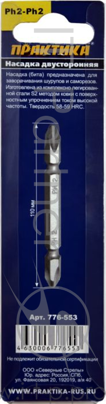 Бита двусторонняя ПРАКТИКА 776-553 Ph2-Ph2 110мм, Профи, 1шт. в блистере