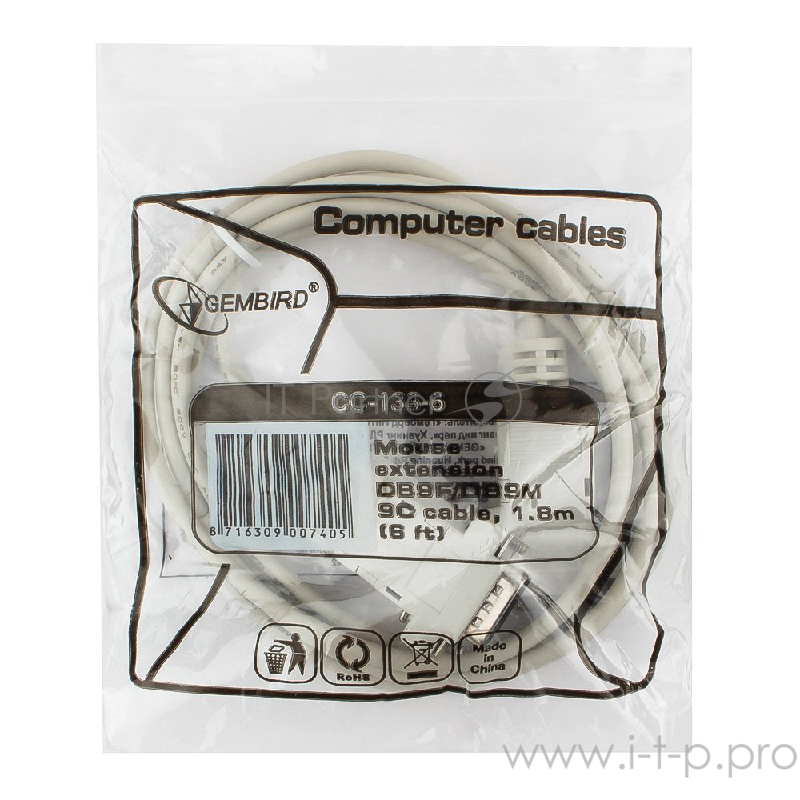 Кабель Кабель удлинитель COM порта 9M/9F, 1.8м, Gembird CC-133-6