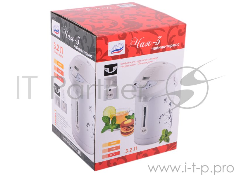 Термопот Великие Реки Чая-3, 750 Вт, 3,2 л, металл корпус, колба из нерж. стали, съемный шнур