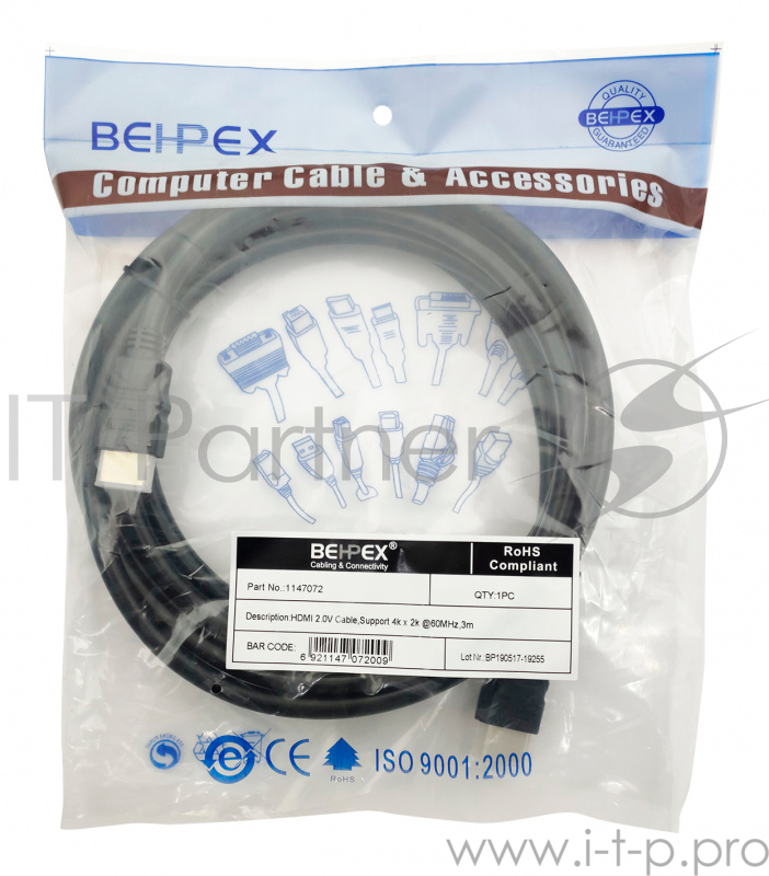Кабель видео HDMI (m)/HDMI (m) 3м. черный