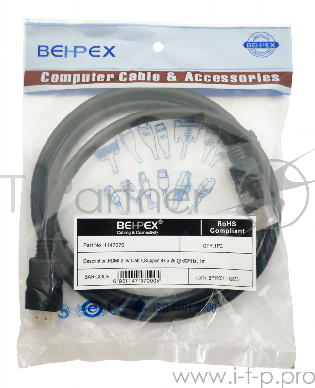 Кабель видео HDMI (m)/HDMI (m) 1м. черный