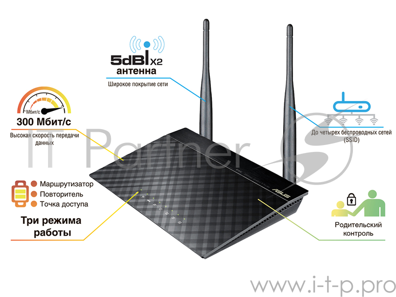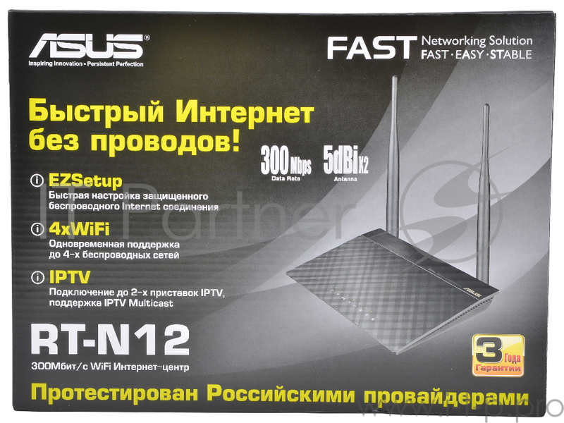 Сетевое оборудование ASUS RT-N12 VP WiFi Router (WLAN 300Mbps, 802.11bgn+4xLAN RG45 10/100+1xWAN) 2x ext Antenna