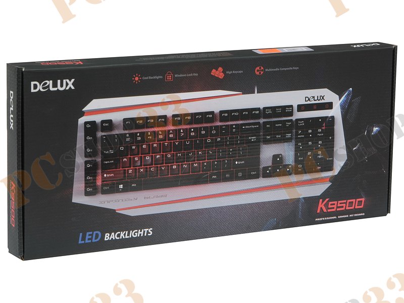 Клавиатура Delux K9500, подсветка, бело-черный (USB)