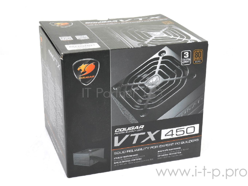 Cougar VTX 450 Блок питания (450 Вт, чёрный, PCIe- 2шт, ATX v2.31, Active PFC, 120mm Fan, 80 Plus Bronze)