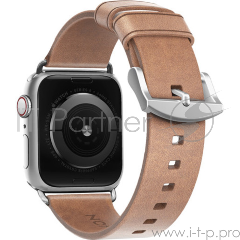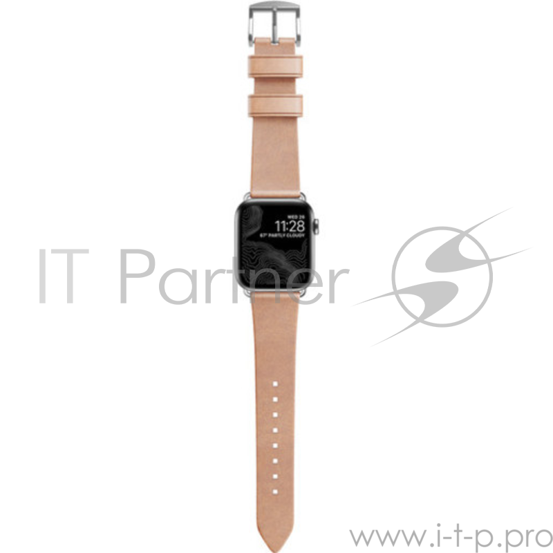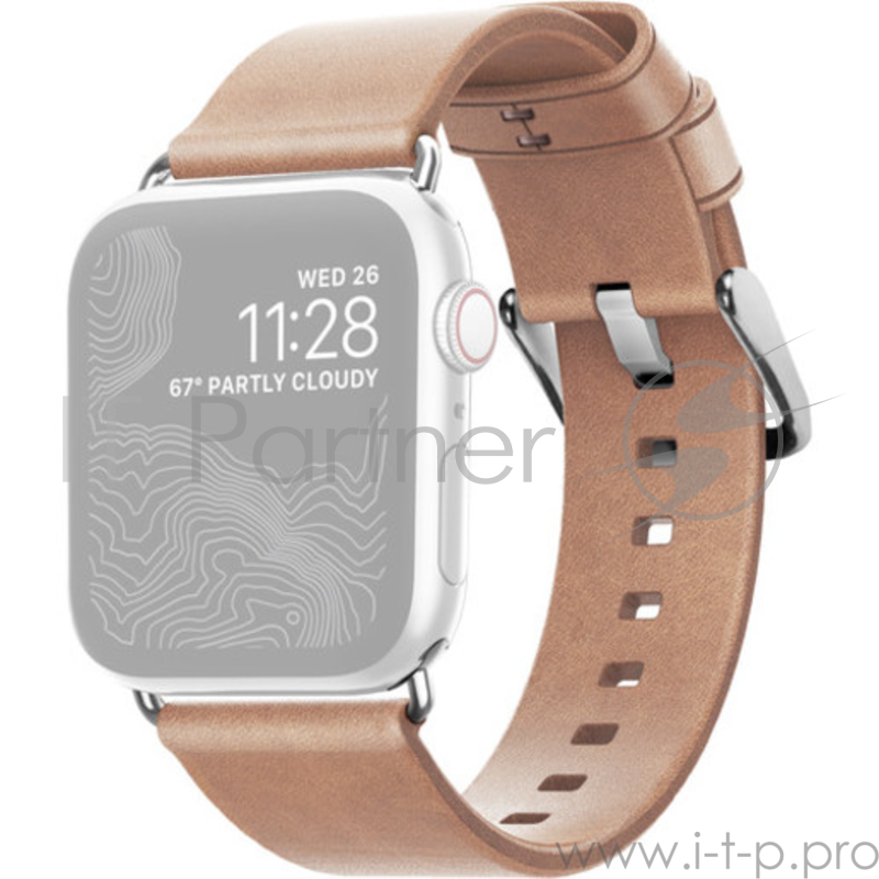 Ремешок Nomad Modern Strap (Slim) для Apple Watch 40mm/38mm. Материал кожа натуральная. Цвет ремешок светло-коричневый, застежка серебристый.