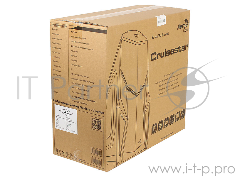 Корпус Aerocool [PGS-V] Cruisestar с окном, с картридером , ATX, без БП, 1 x USB3.0 + 1 x USB2.0, в комплекте 1 x 120мм LED вентилятор спереди