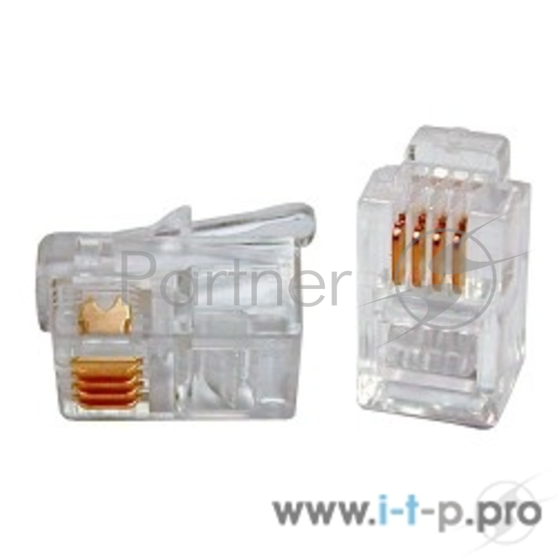 Монтажное оборудование Hyperline PLUG-4P4C-P-C2 Телефонный разъем RJ-11(4P4C) (3 µ"/ 3 микродюйма) для телефонной трубки