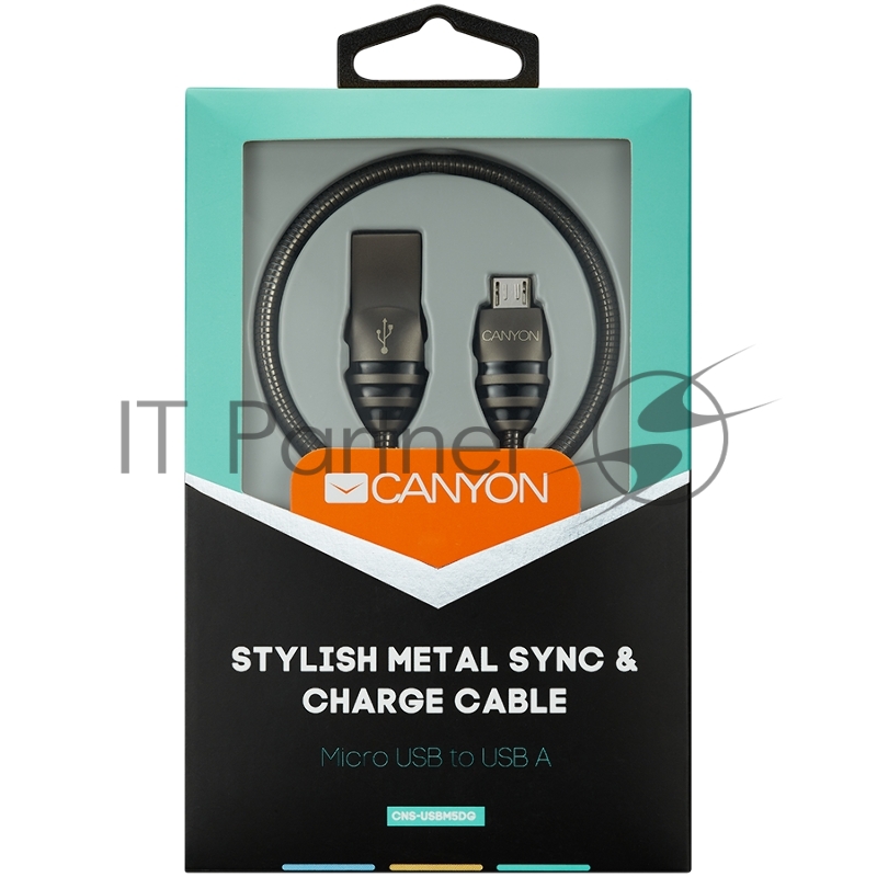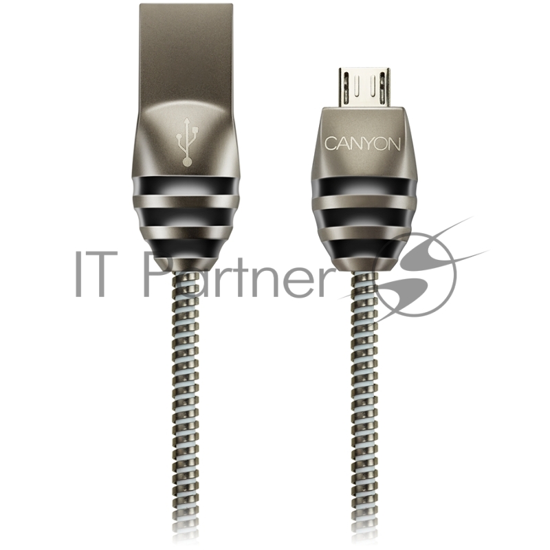 Кабель CANYON Micro USB 2.0 standard cable, Power & Data output, 5V 2A, OD 3.5mm, metallic Jacket, 1m, gun color, 0.04kg