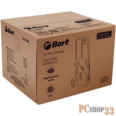[Мойки] Bort KEX-3000 Мойка высокого давления [91276308] { 2700 Вт, максимальное давление 190 бар, рабочее давление 160 бар, 10 л/мин, 10,5 кг, набор аксессуаров 6 шт }