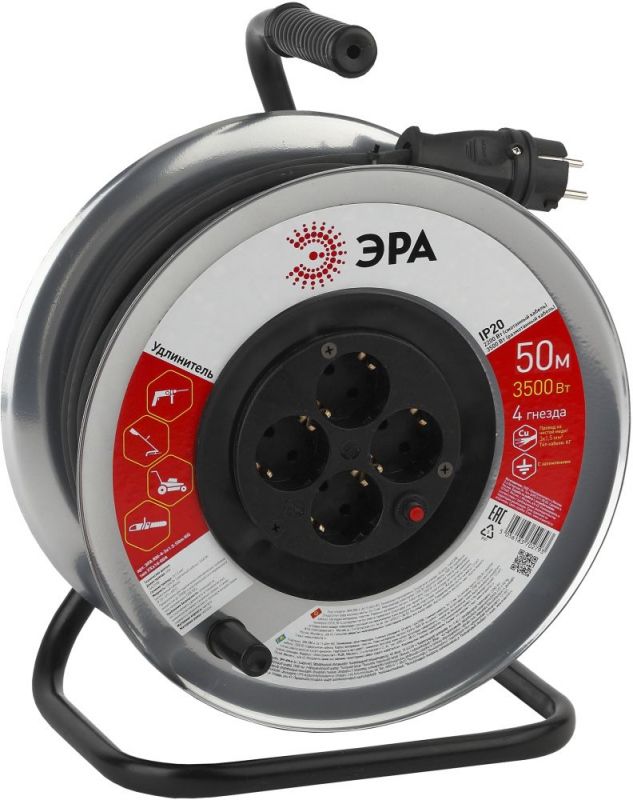 ЭРА Б0035322 Удлинитель силовой RM-4-3x1.5-50m-IP44 c заземлением 4 гн КГ 3х1,5 металлическая катушк