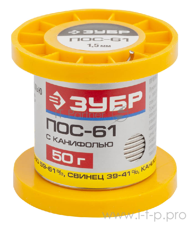 [Припои] Припой ЗУБР, ПОС 61, трубка с канифолью, 50г, 1,5мм [55450-050-15C]