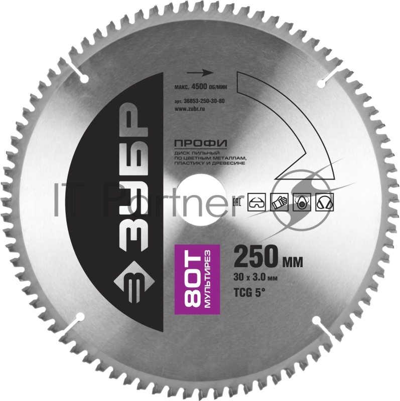 Круг пильный твердосплавный ЗУБР 36853-250-32-80 ПРОФИ точный-мульти рез 80T 250х32мм