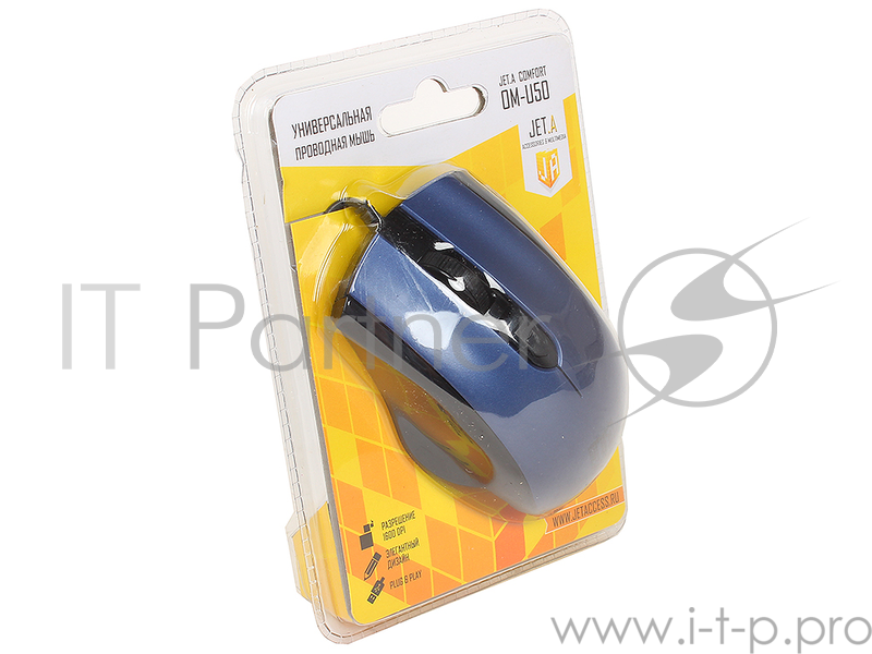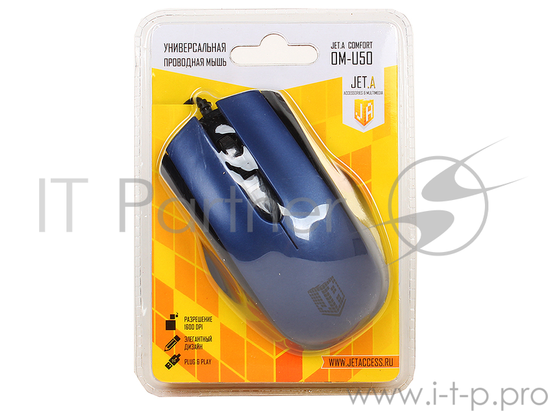 Проводная мышь Jet.A OM-U50 Blue Comfort (800/1200/1600dpi, 3 кнопки, USB)