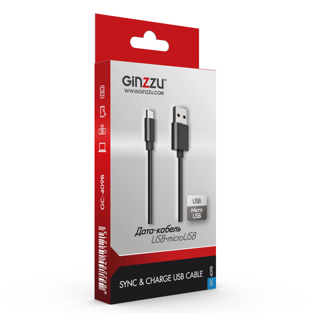 Дата-кабель Ginzzu microUSB, TPE, 1,0 м, черный (GC-409B)