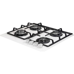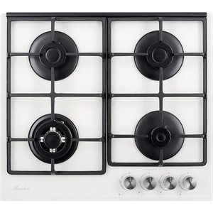 Встраиваемые варочные панели MONSHER Газовая варочная поверхность,стекло, ширина 60 см, 4 газовые конфорки, автоподжиг, газ-контроль, чугунная решетка, цвет белый/стекло