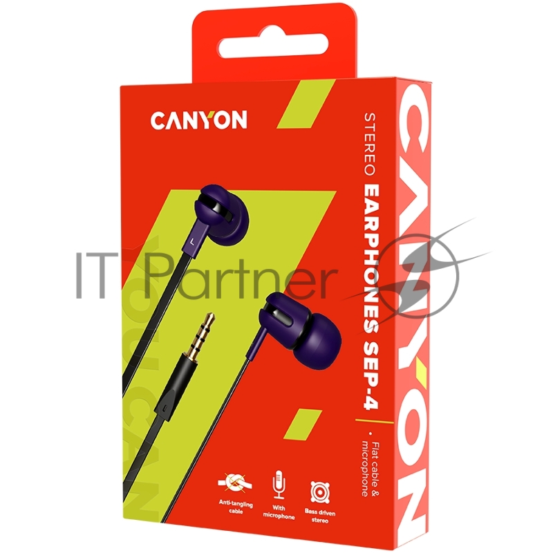 Гарнитура CANYON , 1.2m flat cable, Purple, 22*12*12mm, 0.013kg