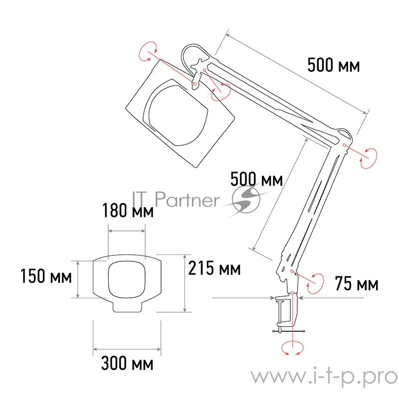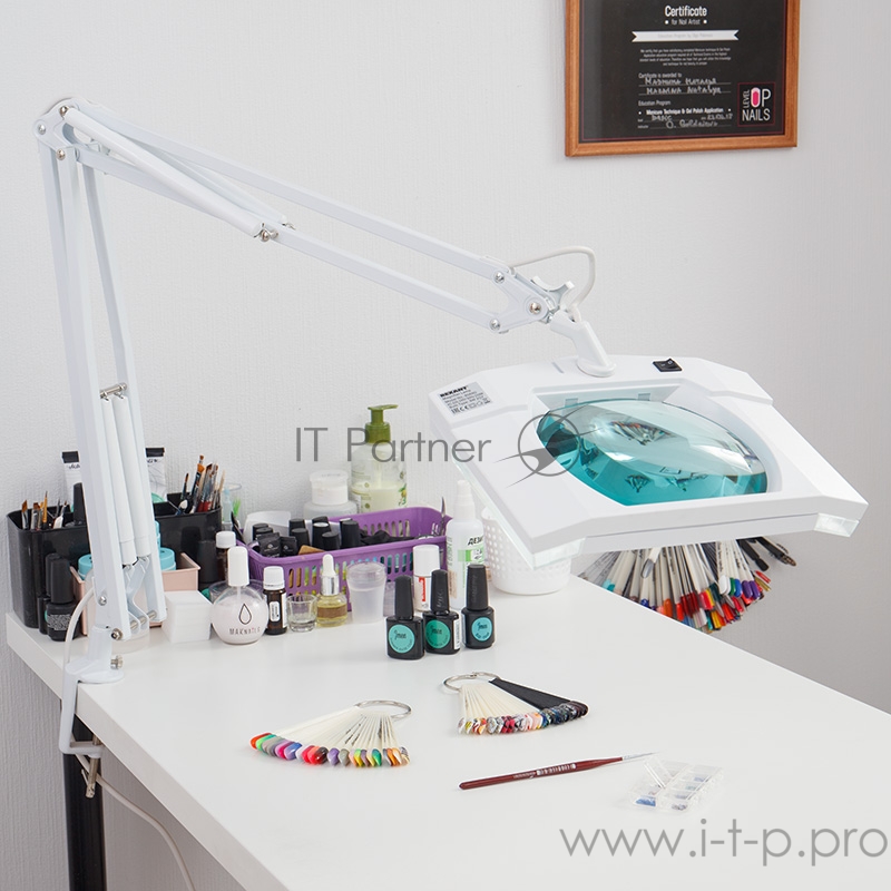 REXANT Лупа на струбцине квадратная настольная 5Х с подсветкой, белая 31-0111