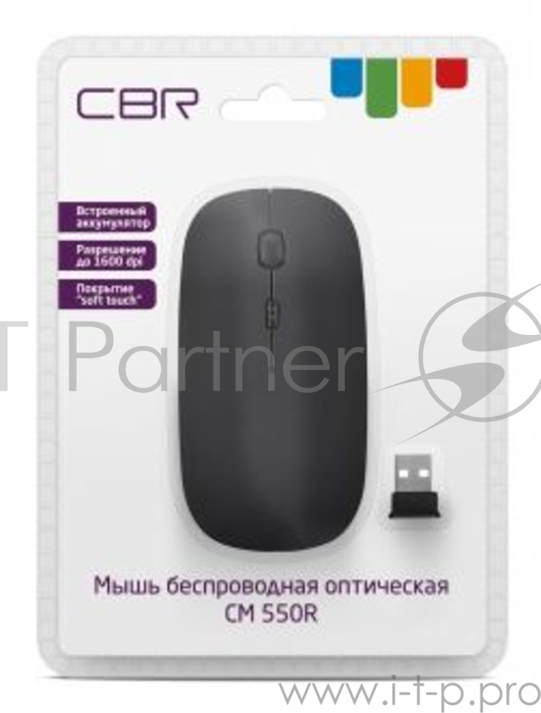 CBR CM 550R Black, Мышь беспроводная, оптика, 2.4 ГГц, на аккумуляторах, 800/1200/1600 dpi, 3 кнопки и колесо прокрутки, покрытие "soft touch", выключатель питания, кабель в комплекте