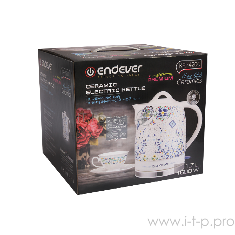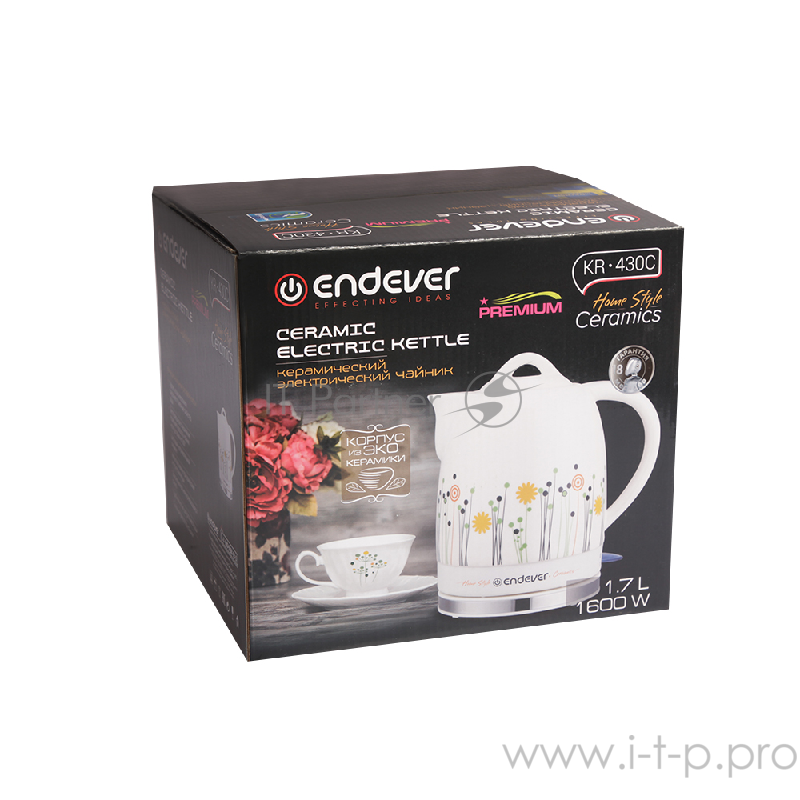 Чайник Endever Skyline KR-420 C. 1 600 Вт, керам. корпус , 1,7л, белый с рисунком