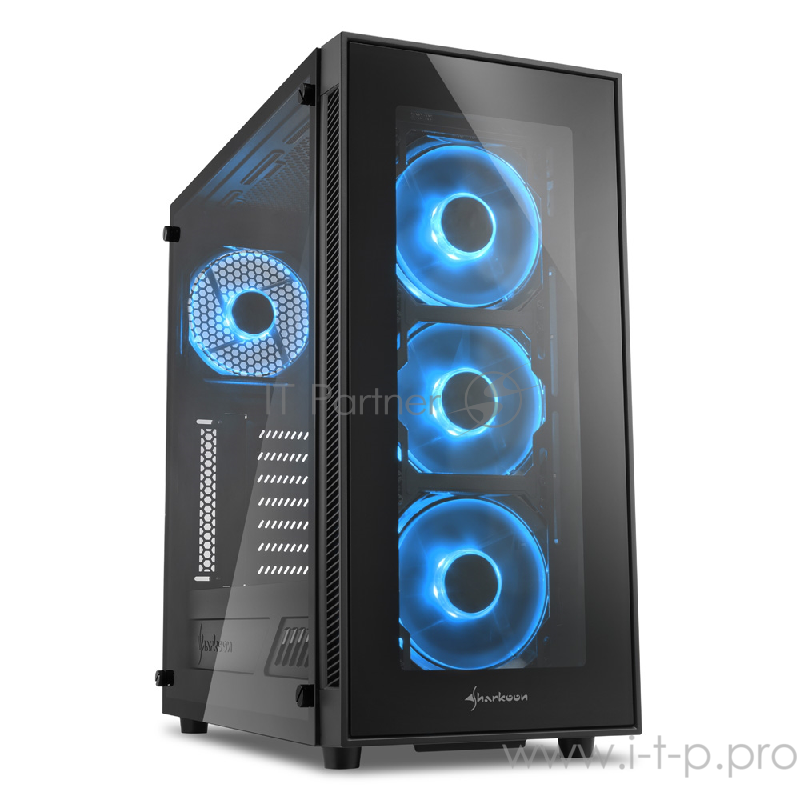Sharkoon TG5 blue led игровой корпус чёрный (ATX, закаленное стекло, fan 3x120 мм + 1x120 мм, 2xUSB 2.0, 2xUSB 3.0, audio)