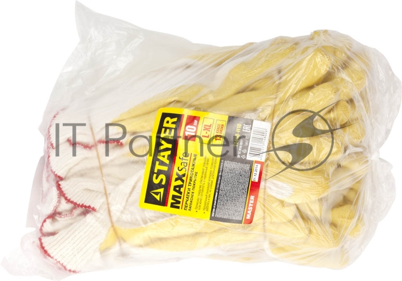 Перчатки STAYER MASTER MaxSafe трикотажные, обливная ладонь из латекса, х/б, 13 класс, L-XL, 10 пар [11408-H10]