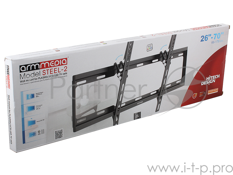 Кронштейн ARM Media STEEL-2 black, для LED/LCD/PLASMA TV 26"-70", max 35 кг, 1 ст свободы, наклон 0°-14°, от стены 25 мм , VESA 600x400 мм