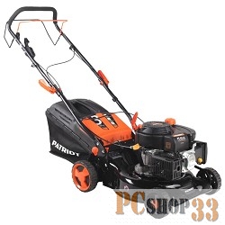 Газонокосилка Газонокосилка бензиновая PATRIOT PT 42LS 512109004 {Рабочий объем 123сс, мощность 3.5л.с., рабочая ширина 42см, регул. высоты 30-75мм прорезин. колеса 152-178мм, травосбор. 40л, функц. мульчир.}