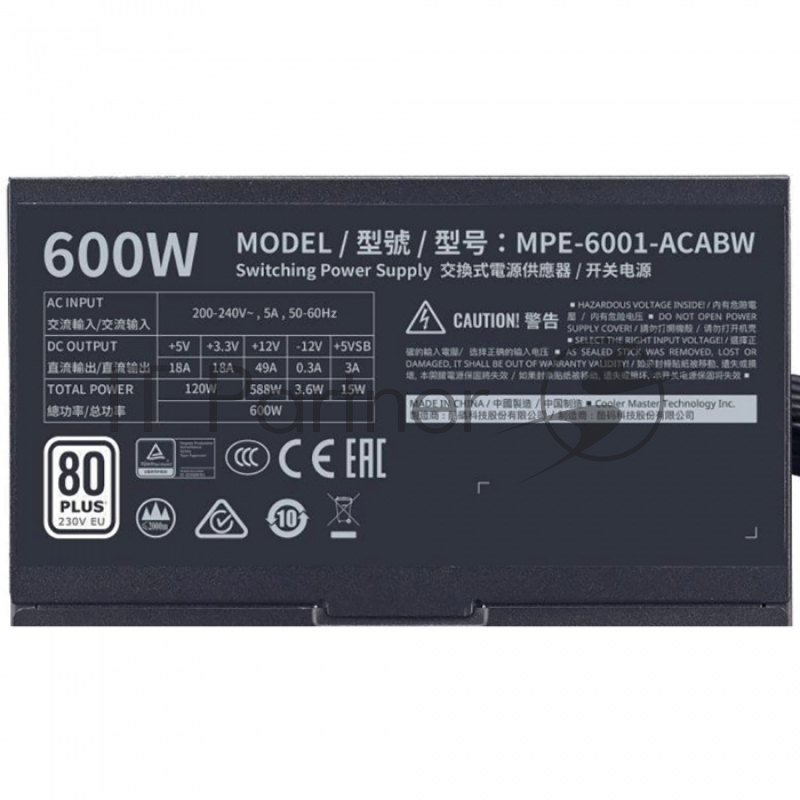 Купить Блок питания Cooler Master MPE-6001-ACABW-EU в Коврове. Забрать в магазине "Ваш Компьютер" г.Ковров пр-т Ленина 20