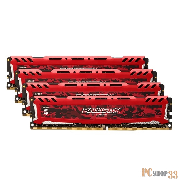 Память оперативная Crucial 16GB Kit (4GBx4) DDR4 2666 MT/s (PC4-21300) CL16 SR x8 Unbuffered DIMM 288pin Ballistix Sport LT Red