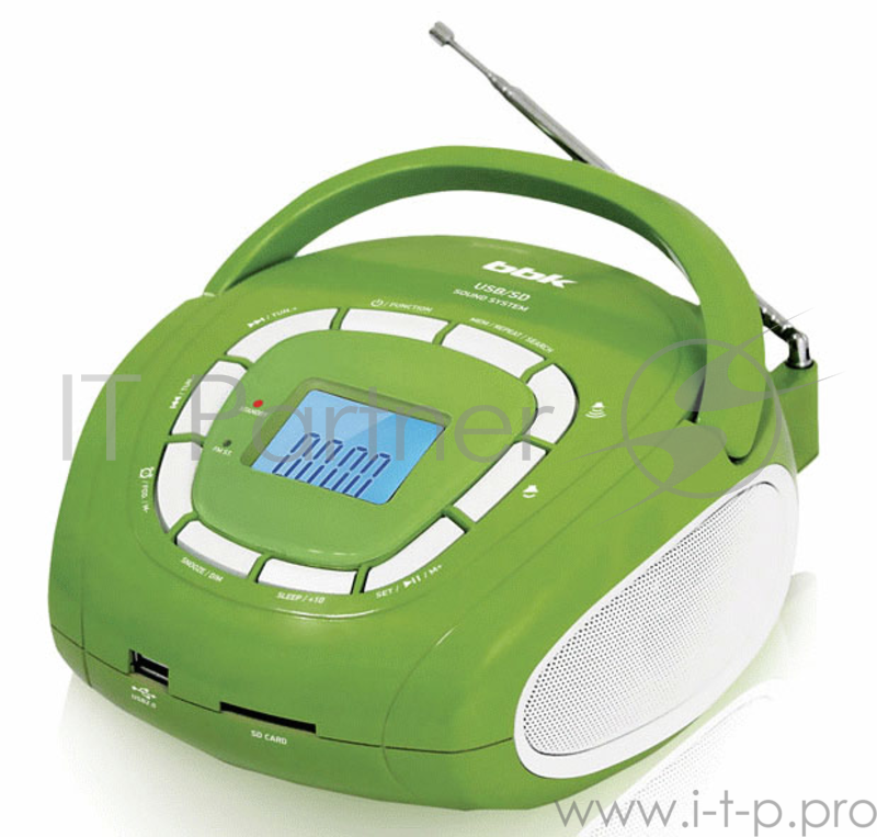 Аудиомагнитола BBK BS05 салатовый/серебристый 2.4Вт/MP3/FM(dig)/USB/SD