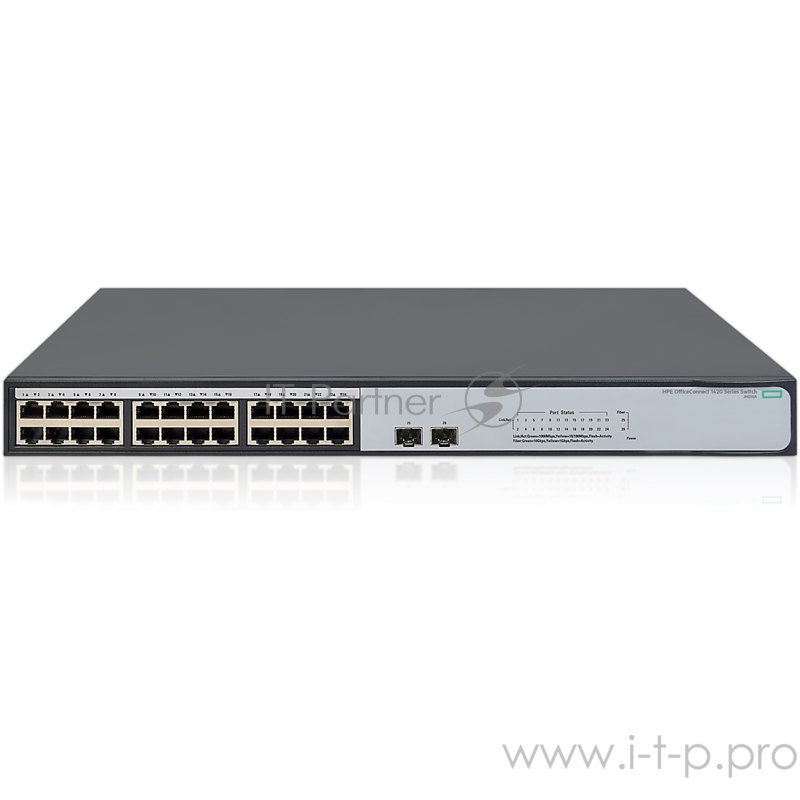 Сетевой коммутатор HP 1420-24G-2SFP+ 10G Uplink Switch Switch (Unmanaged, 24*10/100/1000 + 2 SFP+, QoS, fanless, 19)