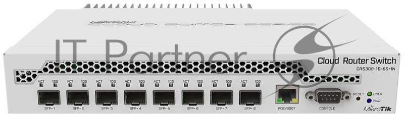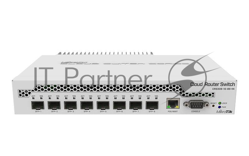 MikroTik CRS309-1G-8S+IN Коммутатор 8 SFP+, dual-core 800MHz CPU, 512MB RAM, POE, RS232 serial port