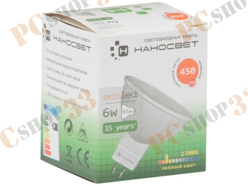 Лампа светодиодная Наносвет LE-MR16A-6/GU5.3/827 ART.L194, GU5.3, 6Вт, теплый белый